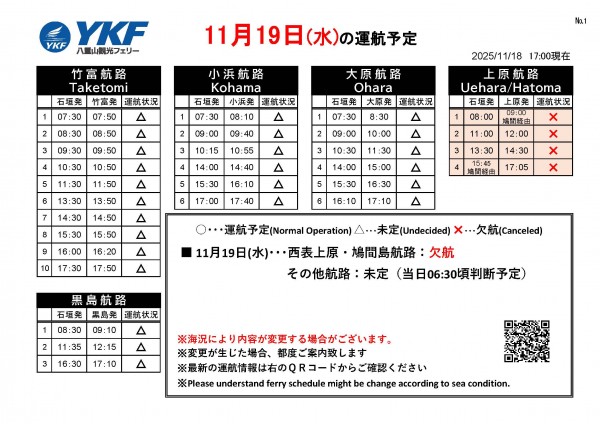 ■ 11月19日(水)・・・西表上原・鳩間航路:欠航