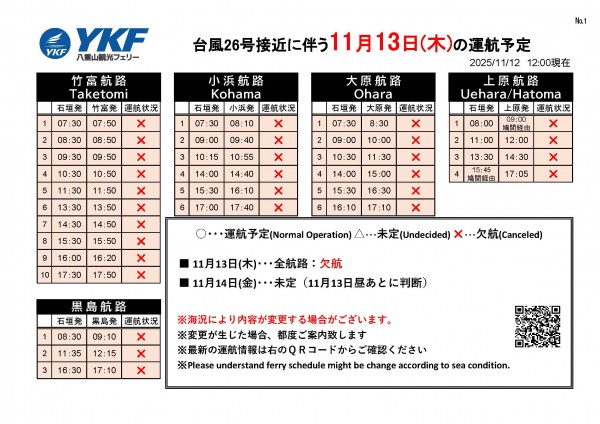 ■ 11月14日(金)・・・全航路:未定(11月13日昼あとに判断予定)
